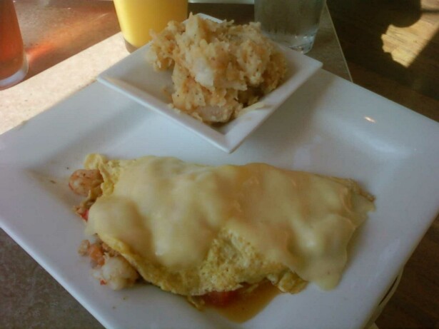| In addition to my bacon, Tony sampled the crab meat and shrimp omlet. While enjoyable, he prefers saving his crab meat and shrimp for lunch and dinner options! |